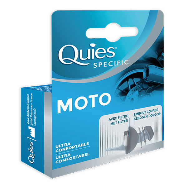 Pensé pour les amateurs de moto, Quies Specific Moto filtre les bruits liés au vent ou au moteur tout en conservant les sons d’alerte indispensables à la sécurité (avertisseurs, bips sonores…).